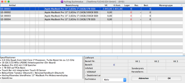 Die Angaben Einkaufspreis und Lieferant erscheinen nur, wenn dem Benutzer die entsprechenden Rechte zugewiesen wurden.