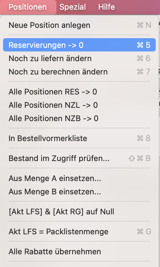 Gehen Sie dazu über “Positionen” auf “Reservierungen -> 0”